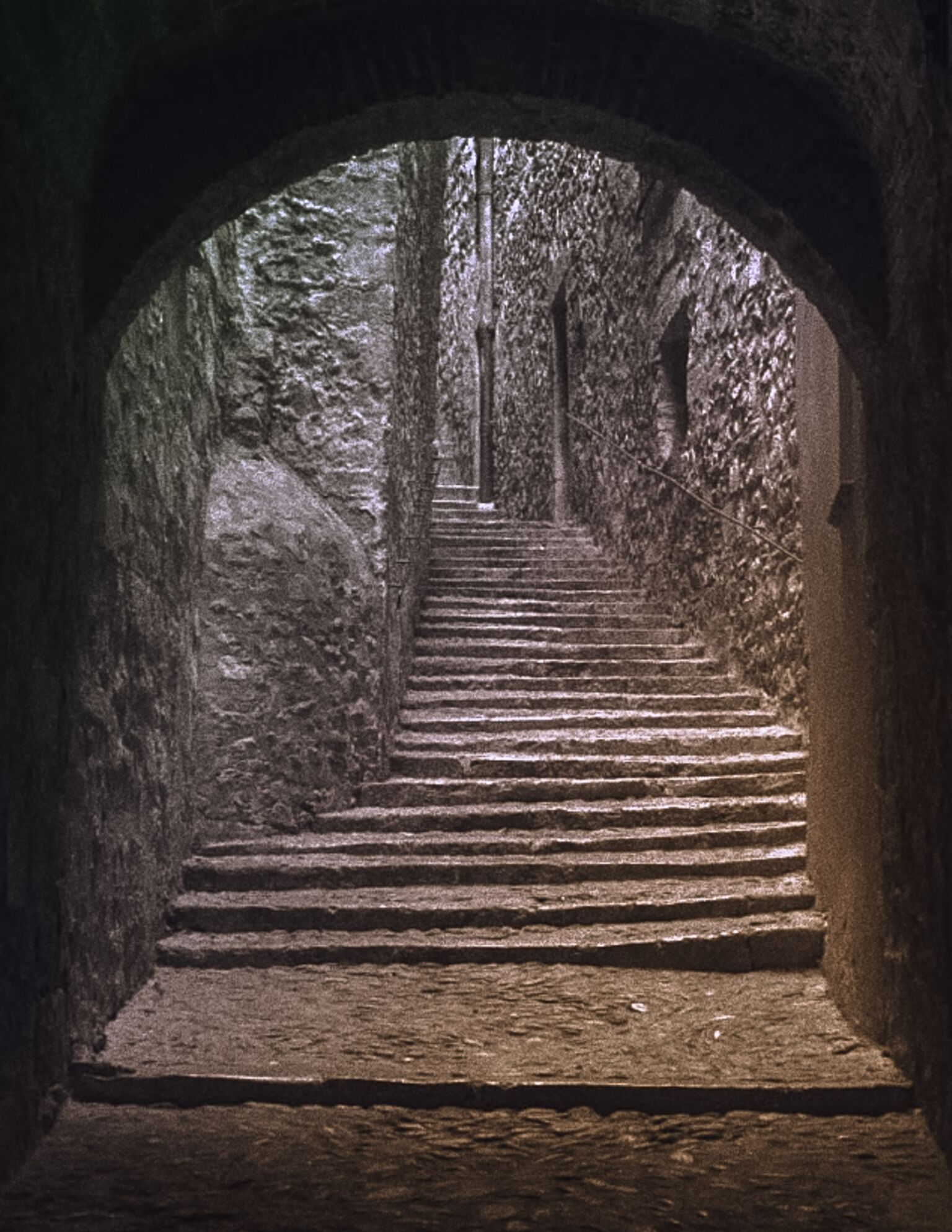 In a scene that could have come out of a Marc Chagall painting, we followed the young man in the flowing tallit up the ancient, winding stone street to the Chabad of Girona Jewish center to the service. (The Rosh Hashanah service the previous week was the first of the New Year in Girona for 600 years…imagine that!)
