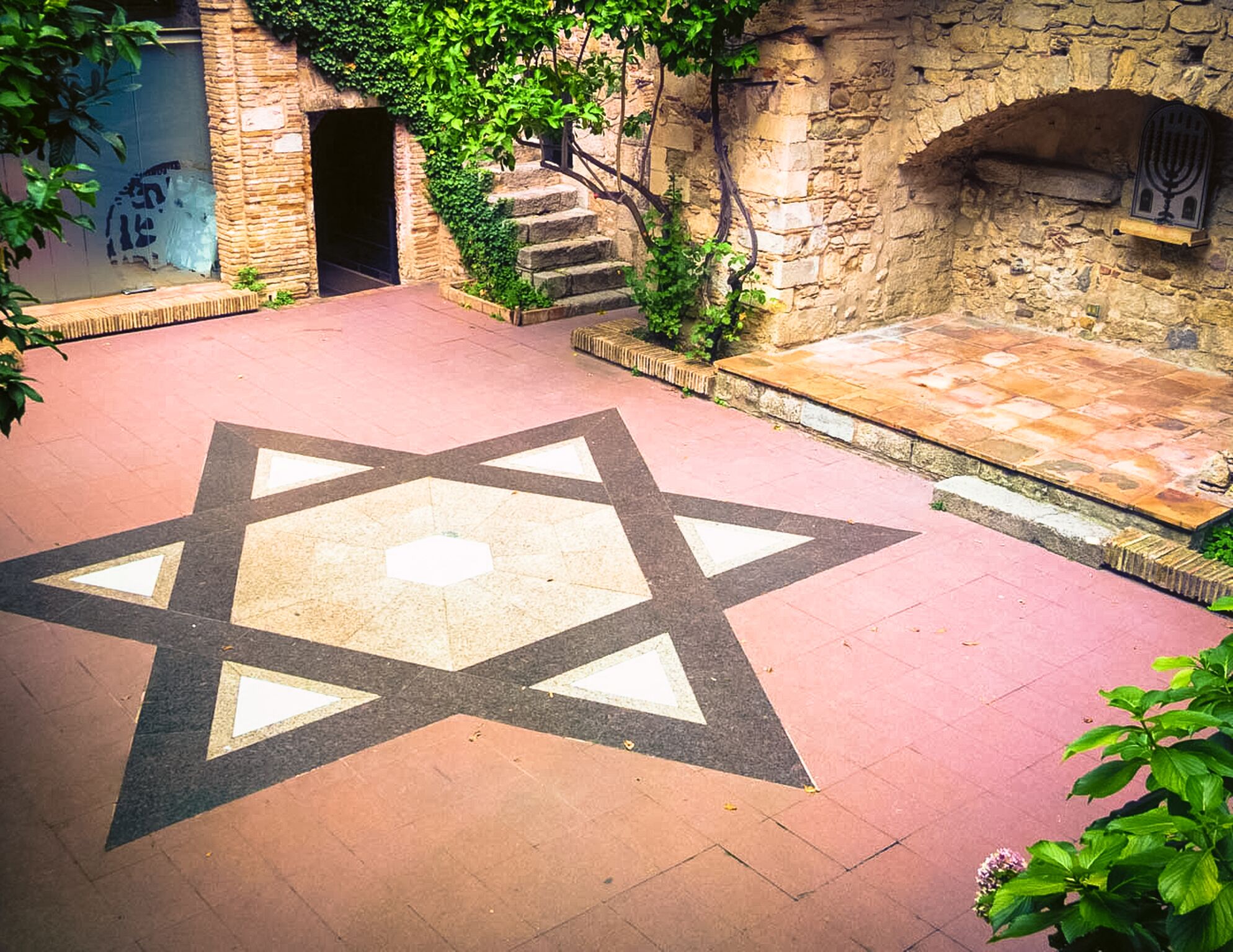After the service, we returned to the Museum of Jewish History and finished our tour. We walked through the story of the Girona Jewish community over the centuries, the attacks of 1391, the Spanish Inquisition and, finally, the 1492 expulsion. The museum has an extensive collection of medieval Jewish artifacts, including massive tombstones, deeds, menorahs, stone blocks from doorways with channels carved out for mezuzot and articles from every area of Jewish life. The museum’s second floor has an outdoor plaza with a large Star of David and an arch with a menorah from an earlier site dedication.