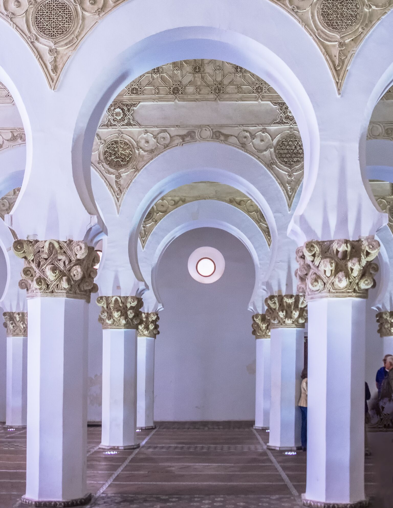 Toledo’s other existing former synagogue is within sight of El Transito. Built in 1180, it is believed that it was originally called the Ibn Shushan Synagogue or the “Congregational Synagogue of Toledo.” It is one of the oldest synagogues still standing. After 1411, it was taken over and later renamed the Santa Maria la Blanca Church, which translates as Saint Mary the White, which was part of an effort to “cleanse the building of what was considered its ‘dark’ Jewish past.”